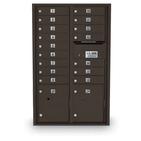 Invest now to get the perfect mailbox for your apartment, residential development, and more. This standard 4C mailbox has 16 tenant compartments and 2 parcel lockers. The mailbox is constructed from durable aluminum with stainless steel hardware and a corrosion resistant finish. This finish allows you to use this mailbox both indoors and out (with kiosk or other application, pending local USPS approval). Each door is outfitted with a heavy duty lock to keep the contents of the mailbox secure. This mailbox meets STD-4C requirements for new construction and renovations. It also meets the requirement of one parcel locker per ten tenant compartments. Please contact us for specific unit measurements.